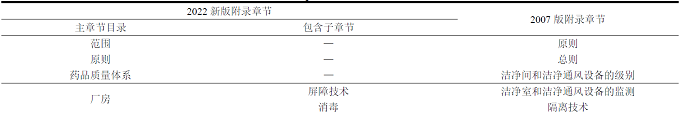 表1 新版附錄目錄變化對(duì)比表