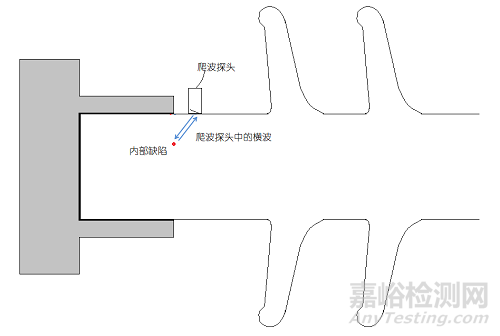 爬波探頭中的橫波遇到內部小缺陷時的情況