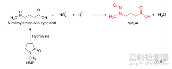在合成過(guò)程中使用的無(wú)機(jī)試劑,如硝酸鹽、NaCl、NaOH和Na2CO3可以含有低濃度( ppm )的亞硝酸鹽;硝酸通常含有二氧化氮,因此四氧化二氮作為雜質(zhì),也可能產(chǎn)生額外的亞硝酸,導(dǎo)致亞硝化[4]。
