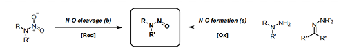 該因素主要是針對(duì)硝基胺被還原成亞硝胺的情況。同時(shí),如果存在任何還原劑,硝基烷烴、鹵代硝基烷烴、Fremy 's鹽、亞硝基磺酰胺和硝基芳烴(例如通過(guò)氟化物脫硝)在某些情況下都可以產(chǎn)生亞硝化試劑。