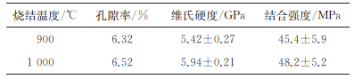 表2 用不同溫度燒結(jié)粉體制備的 (MgCoNiCuZn)O陶瓷涂層的孔隙率和力學(xué)性能