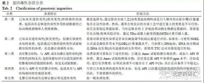 一旦完成了結(jié)構(gòu)評(píng)估,每個(gè)雜質(zhì)應(yīng)根據(jù)其基因毒性危害進(jìn)行分類。Lutz Mueller 等確定的5 類分類方案已被廣泛用于這個(gè)目的,見表2。