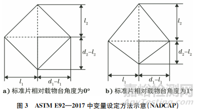NADCAP審核建議ASTM E92—2017中對角線判定方法如式(2),(3)所示。