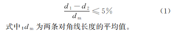 國標(biāo)中對角線判定規(guī)則的變量設(shè)定:將對角線的水平方向長度以及豎直方向長度分別設(shè)定為d1和d2(見圖2)。