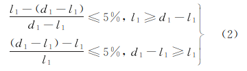 NADCAP審核指導(dǎo)建議中變量的設(shè)定:將豎直方向?qū)蔷€的上半條和下半條長度分別設(shè)定為l1與d1-l1;將水平方向?qū)蔷€的上半條和下半條長度分別設(shè)定為l2與d2-l2(見圖3)。