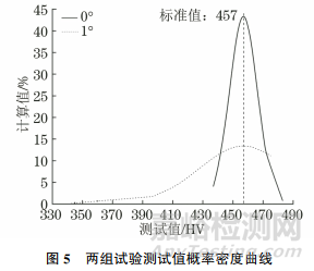 試樣編號為Z711471,標(biāo)準(zhǔn)示值為457HV,均勻度為2.8%。用標(biāo)準(zhǔn)試樣來進(jìn)行對比試驗(yàn)。
