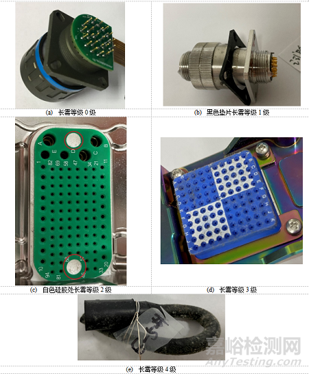 表5 電連接器及電連接器配件霉菌試驗(yàn)結(jié)果