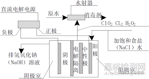 圖1 純化水系統(tǒng)中二氧化氯滅菌原理圖示