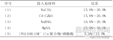 表1 二氧化氯滅菌消毒試劑制備原材料比重設(shè)計(jì)標(biāo)準(zhǔn)