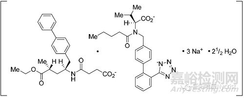 沙庫巴曲纈沙坦鈉并非簡單地將沙庫巴和纈沙坦物理混合,而是沙庫巴曲陰離子、纈沙坦陰離子、鈉陽離子和水分子以1:1:3:2.5的摩爾比形成的穩(wěn)定共晶體復(fù)合物。