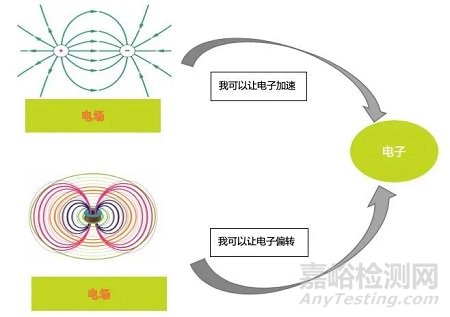 電子在磁場(chǎng)中會(huì)受到洛倫茲力的作用,從而改變運(yùn)動(dòng)的方向,在掃描電鏡中主要體現(xiàn)在物鏡(通電磁線圈產(chǎn)生的磁場(chǎng)會(huì)聚電子)以及掃描單元(通電磁線圈產(chǎn)生的磁場(chǎng)偏轉(zhuǎn)電子)。