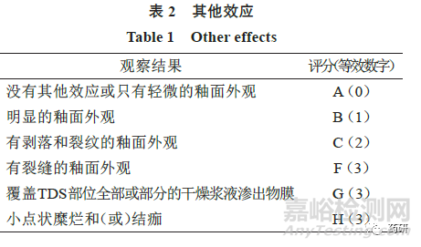 當觀察到1 個或多個“其他效應”時,申請人應將每個評分報告為皮膚反應數(shù)(字母綜合評分)和數(shù)字總數(shù)(即數(shù)字“皮膚反應”評分+ 等效數(shù)字的“其他效應”字母的評分)。例如,皮膚反應6 分加上有裂縫的釉面外觀[F(3)]將等于9 分。當沒有觀察到“其他效應”時,零分應適用于觀察的“其他效應。”