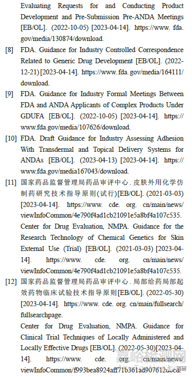 FDA 建議申請人在考慮設計和實施可能適合支持擬用仿制TDS 產(chǎn)品與其RLD生物等效性的研究時,參考該指導原則以及任何相關的具體產(chǎn)品指導原則(PSG)[4]和任何相關的企業(yè)用的指導原則[5-6]。FDA還建議申請人,定期訪問FDA的網(wǎng)站,因為可能有其他的指導原則,有助于開發(fā)仿制TDS產(chǎn)品。