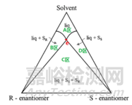圖3 非對映異構(gòu)體混合物三元結(jié)晶相圖的示意圖