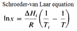 Schroeder-van Laar equation中,x是摩爾組成,△Hi是純異構(gòu)體鹽的熱焓,Ti是純異構(gòu)體鹽的熔點(diǎn)。T是摩爾組分為x的混合物熔點(diǎn)“終值”。
