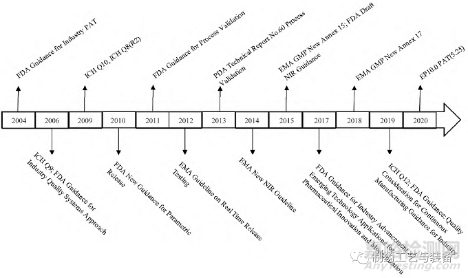圖1 歐美制藥工業(yè)中過程分析技術(shù)( PAT) 相關(guān)指導(dǎo)原則概覽