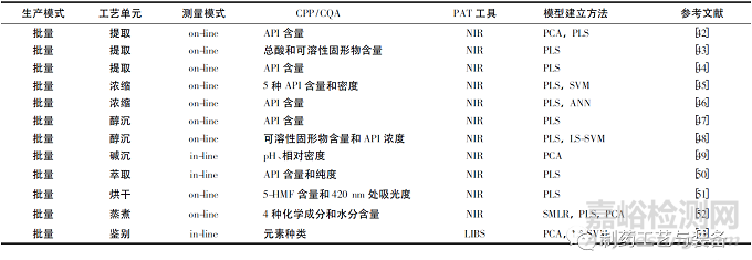 表2 近10年P(guān)AT在中成藥生產(chǎn)中部分應(yīng)用實例文獻(xiàn)列表