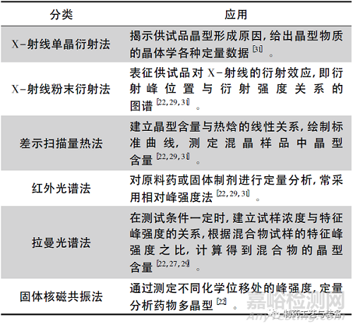 多晶型藥物的質量評價包括定性評價和定量評價,分別研究的是藥物內部晶型排列、堆砌結構和有效晶型占有量的問題。