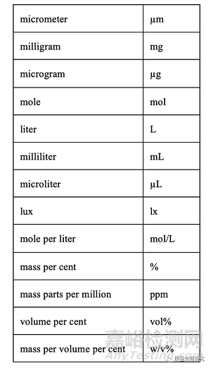 注意:核磁共振波譜學中使用的“ppm”表示化學位移,“w/v%”用于制劑的配方或組成。