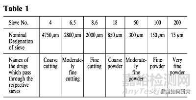 18、下表中的術語用于表示生藥的切割程度或粉末藥物的細度。