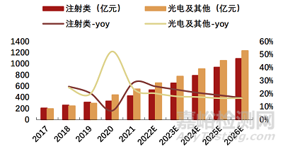 ▲III類醫(yī)療器械注射針劑應(yīng)用市場規(guī)模(十億元)(圖源:招商證劵)