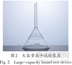 沒有刻度的大容量漏斗:容量(160±5)mL;底盤直徑88~92 mm,總高度為225 mm,如圖2所示。