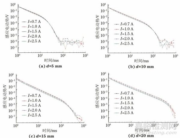 圖6 各試件不同電流下的電磁檢測(cè)信號(hào)
