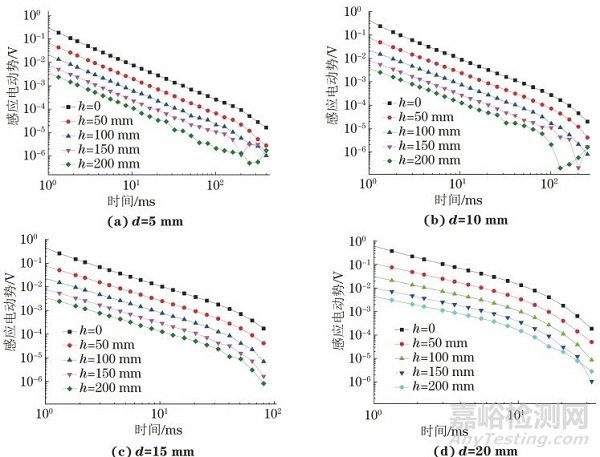 圖9 各試件不同提離高度下的電磁檢測(cè)信號(hào)