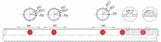 圖12 管道人工缺陷規(guī)格及分布示意