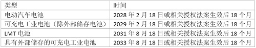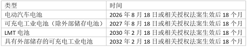 2、第1點(diǎn)所列限制在2028年8月18日前不適用于便攜式鋅空氣紐扣電池。