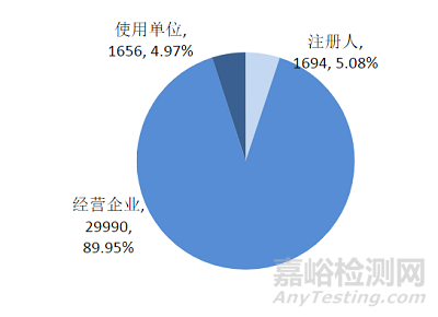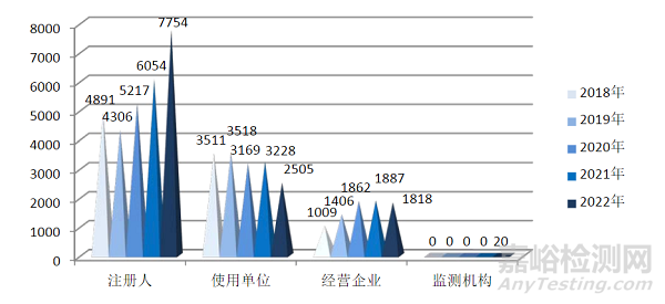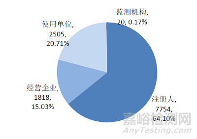 截至2022年12月31日,上海市已有33340家用戶在國家醫(yī)療器械不良事件監(jiān)測(cè)信息系統(tǒng)中注冊(cè),較2021年增加2300家,增長了7.41%。其中,注冊(cè)人1694家,經(jīng)營企業(yè)29990家,使用單位1656家(圖3,圖4)。
