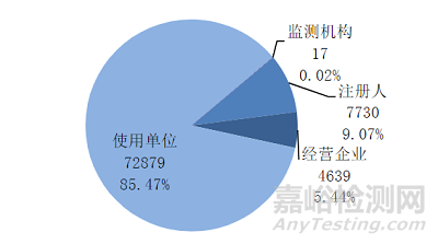 2022年,中心通過國家醫(yī)療器械不良事件監(jiān)測(cè)信息系統(tǒng)共收到與上海注冊(cè)人相關(guān)的醫(yī)療器械不良事件報(bào)告85265份,其中注冊(cè)人主動(dòng)上報(bào)7730份,占9.07%,經(jīng)營企業(yè)上報(bào)4639份,占5.44%;使用單位上報(bào)72879份,占85.47%;監(jiān)測(cè)機(jī)構(gòu)代報(bào)17份,占0.02%(圖9)。