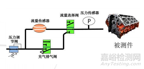 圖片流量法是一種最直接的泄漏測量方法,即通過回路串入流量傳感器,如下圖直接測量得到泄漏率值: