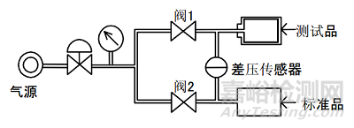 對被測件和標準件同時充入壓縮氣體,由高精度的差壓傳感器測出被測件與標準件之間的壓力差。在一般情況下首選直接壓力法,在精度要求較高的場合才選用差壓法。
