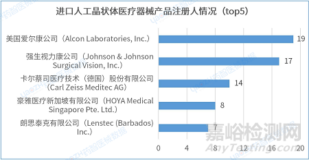 2.7進(jìn)口人工晶狀體醫(yī)療器械產(chǎn)品注冊(cè)人情況(top5)