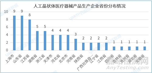 3.2人工晶狀體產(chǎn)品生產(chǎn)企業(yè)省份分布情況