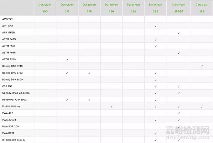 為了滿足這些要求,我們投入了大量時間和精力來確保Daraclean水性清洗劑能夠被批準用于航空航天的應(yīng)用。我們最受歡迎的一些配方獲得了ASTM、AMS、ARP、Boeing、Lockheed、GEAE、Pratt & Whitney PMC和Raytheon規(guī)范和程序的批準。
