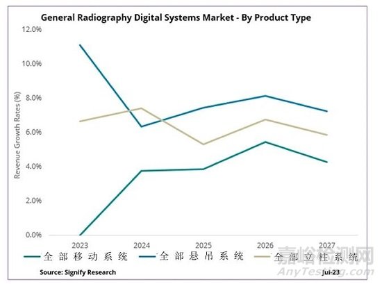 近日,英國(guó)醫(yī)療科技市場(chǎng)調(diào)研公司Signify Research發(fā)布了《2023年普放&透視報(bào)告》①,其數(shù)據(jù)顯示,2022年-2027年,固定式DR的市場(chǎng)前景比移動(dòng)DR更為有利,復(fù)合年增長(zhǎng)率(CAGR)將達(dá)7.2%。