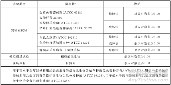 消毒物體表面時殺滅微生物指標(biāo)