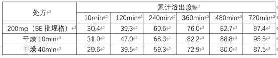 表2: 50mg規(guī)格包衣后不同干燥時間與200mg規(guī)格(BE規(guī)格)的溶出對比