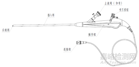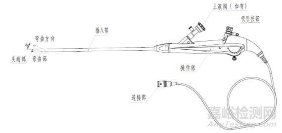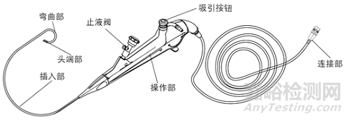 結(jié)構(gòu)組成:電子泌尿系統(tǒng)內(nèi)窺鏡一般為直視型(視向角為0度),鏡體由頭端部、彎曲部、插入部、操作部及連接部組成,產(chǎn)品組成中可包括與之連接、組裝的附件,例如吸引按鈕、鉗子管道開口閥/止液閥等。附件可集成在電子泌尿系統(tǒng)內(nèi)窺鏡上,也可作為單獨(dú)附件,使用前安裝到電子泌尿系統(tǒng)內(nèi)窺鏡上。