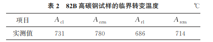 (1)82B高碳鋼臨界點(diǎn)Ac1為731℃,Accm為780℃。