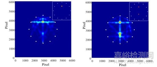 為避免Lamb波在碳纖維復(fù)合材料中傳播的產(chǎn)生的復(fù)雜反射信號的特征提取困難,Su等提出了基于希爾伯特能譜和Lamb波層析成像的損傷識別方法,如圖15所示,分別在仿真模擬和實驗兩方面都實現(xiàn)了碳纖維復(fù)合材料的單損傷和多損傷的定位成像。