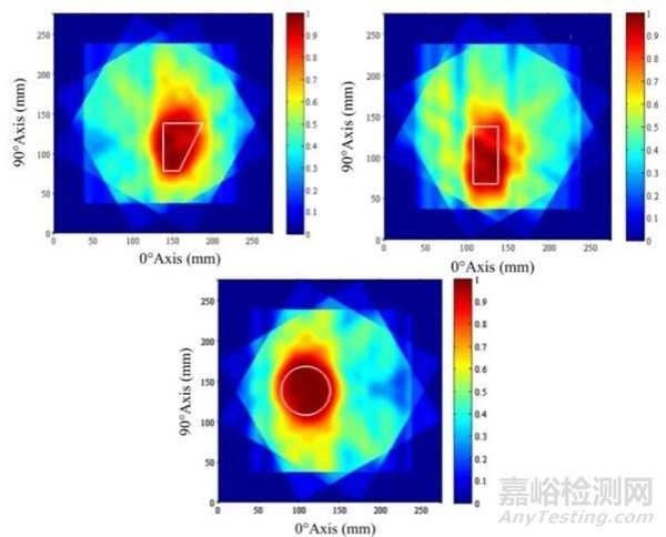 圖16 碳纖維復(fù)合材料不同形狀的損傷的概率成像結(jié)果