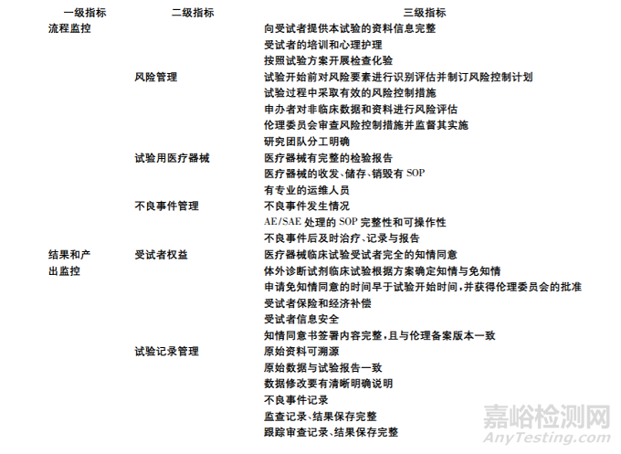 (2) 系統(tǒng)性原則: 指標(biāo)體系的構(gòu)建要具有層次性,自上而下,結(jié)合《醫(yī)療器械臨床試驗(yàn)設(shè)計(jì)指導(dǎo)原則》《醫(yī)療器械臨床試驗(yàn)檢查要點(diǎn)》,設(shè)計(jì)的指標(biāo)體系要覆蓋全部環(huán)節(jié)的重點(diǎn)。