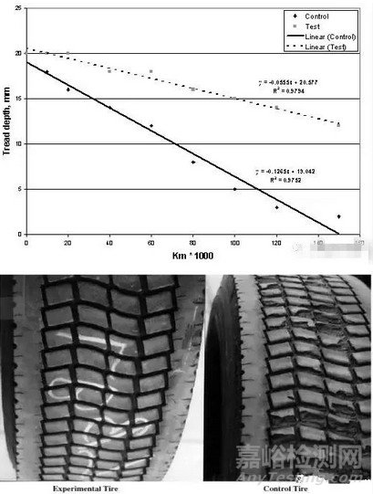 芳綸短纖維在TBR中的應(yīng)用:1000公里輪胎實(shí)驗(yàn),添加PP/ODPTA纖維的輪胎表面光滑,但沒(méi)有添加的輪胎表面蹦花嚴(yán)重。
