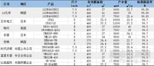 表1 國外及國內(nèi)主要反滲透膜企業(yè)產(chǎn)品對比