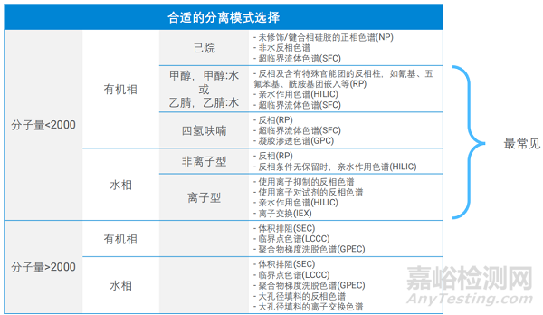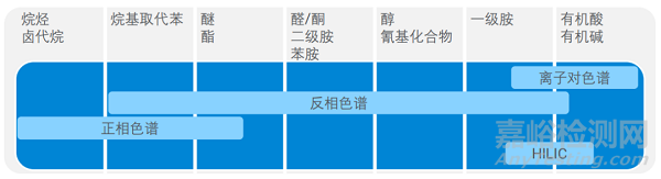 了解了化合物的溶解性,還可以確定分析它使用何種分類模式,下面是一些常見化合物的所對應(yīng)的不同的分離模式。