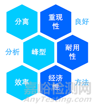 對于分析方法的評價可以從分離、峰型、效率、重現(xiàn)性、耐用性和經(jīng)濟性6個方面進行評價。