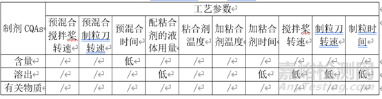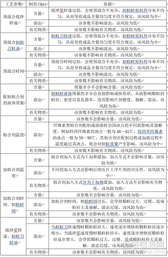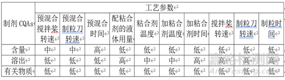 表2:濕法制粒各工藝參數(shù)的初始風險評估的依據(jù)